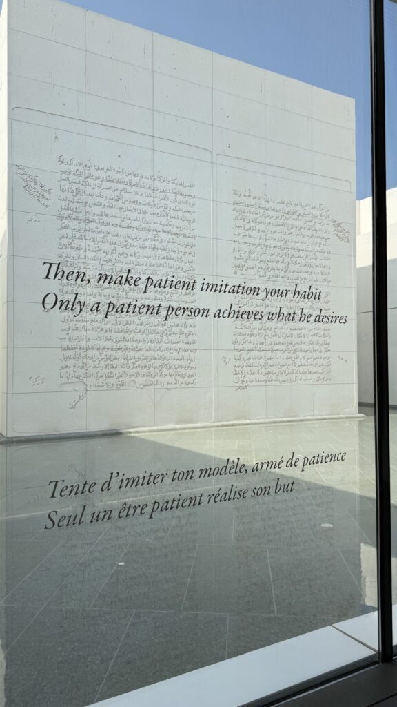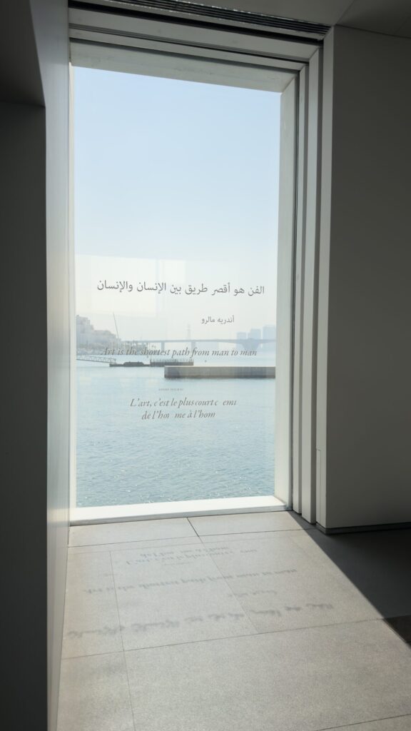 Ale výsledok stojí za to. Návštevníci môžu obdivovať diela od Leonarda da Vinciho, Moneta, van Gogha, Matisseho či Gauguina. Ale taktiež aj islamské rukopisy, africké masky, čínske bronzy či antické sochy. Expozície nie sú zoradené podľa kontinentov, ale podľa tém, ktoré spájajú ľudstvo – láska, viera, krása, smrť, moc. Louvre Abu Dhabi je tak múzeom ľudskej civilizácie ako celku, nie len výkladnou skriňou západného sveta.