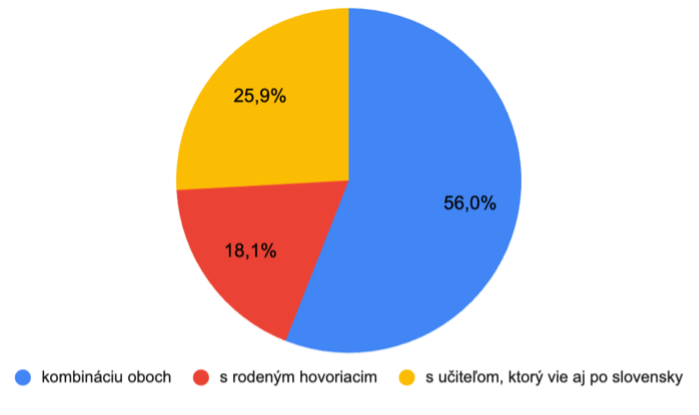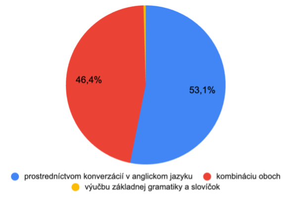 Celkovo rodičia uprednostňujú výučbu konverzáciami – 53% rodičov kladie väčší dôraz na rozprávanie a 47% rodičov na kombináciu rozprávania a gramatiky.  Mnohí (18,1%) sú tiež otvorení hodinám angličtiny s tzv. „native speakerom“, väčšina však preferuje kombináciu native speakra a učiteľa, ktorý vie aj po slovensky.